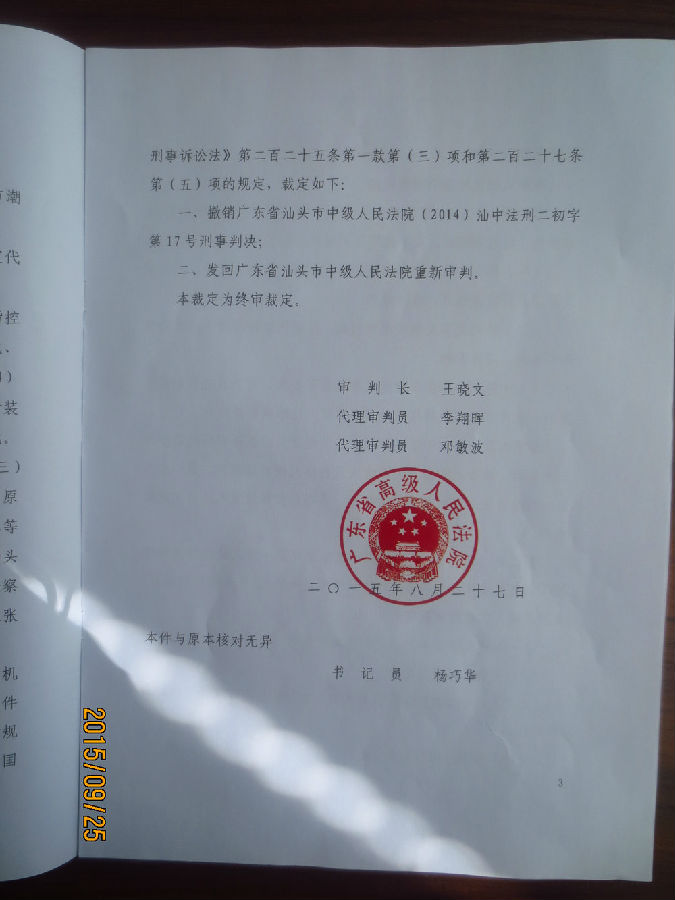 张立文律师办理的全国最大走私橡胶线案件被广东高院二审发回重审。