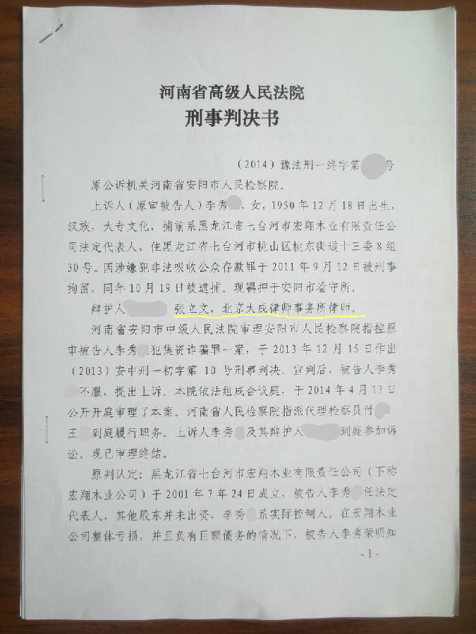 张立文律师成功办理河南高院审理的李某集资诈骗案。